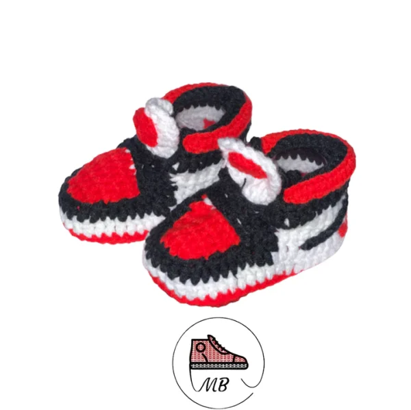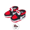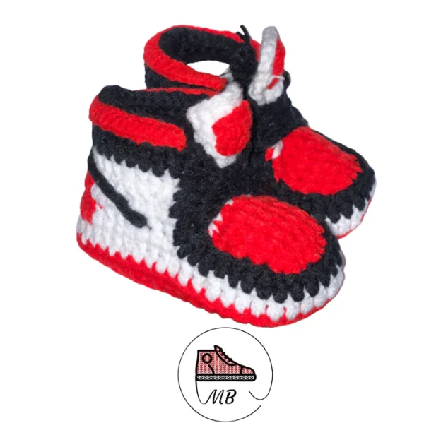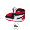 If you like basketball, or you love to collect retro athletic shoes, then these baby knit sneakers might look familiar. Designed to look like a popular brand of red and black high-tops, these baby shoes will have your precious one looking and feeling good.